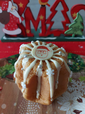 Un pandorino di 100 grammi senza glutine e senza lattosio che ho decorato con cioccolato bianco fuso, perline argento, fiocchi di neve e bottone di cioccolato bianco natalizio.